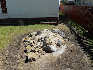 We asked the owner at Cosy Cottages which Maori evening he recommended, and he said we should first visit the real thing - a Maori marae meeting place. near the lake and then take one of the coach trips to see an evening of dance, traditional skills and food cooked the Maori way using a Hangi. The next photos show our visit to the real thing at Ohinemutu....